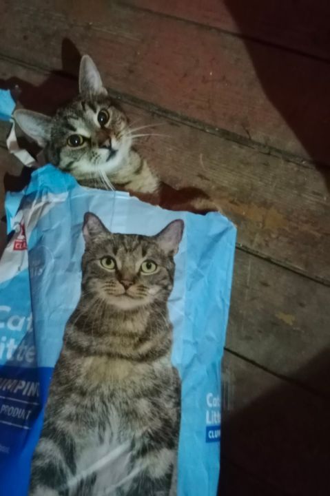 Kaufland Polska 😆 Tosia chciała wam zwrócić uwagę, że żwirek za szybko się kończy 😀 🤷♀️ PS. popatrzcie jak pięknie jej pysio wyglądałby na opakowaniach
