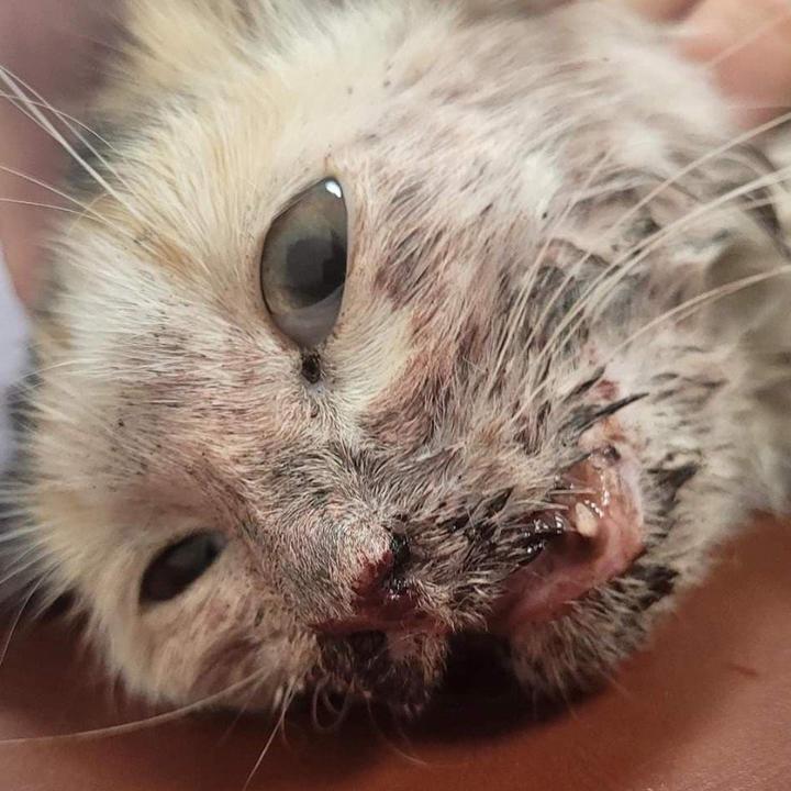 Badania wykazały złamanie szczęki w dwóch miejscach, uraz pysia oraz oka, złamanie łapy, połamanie ogona.