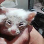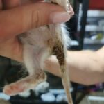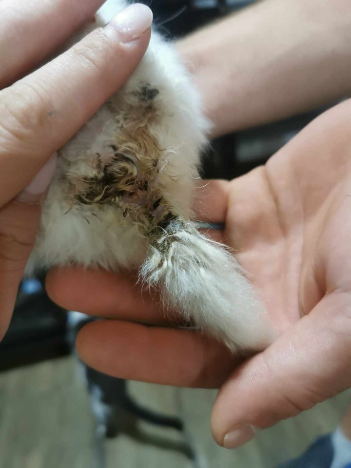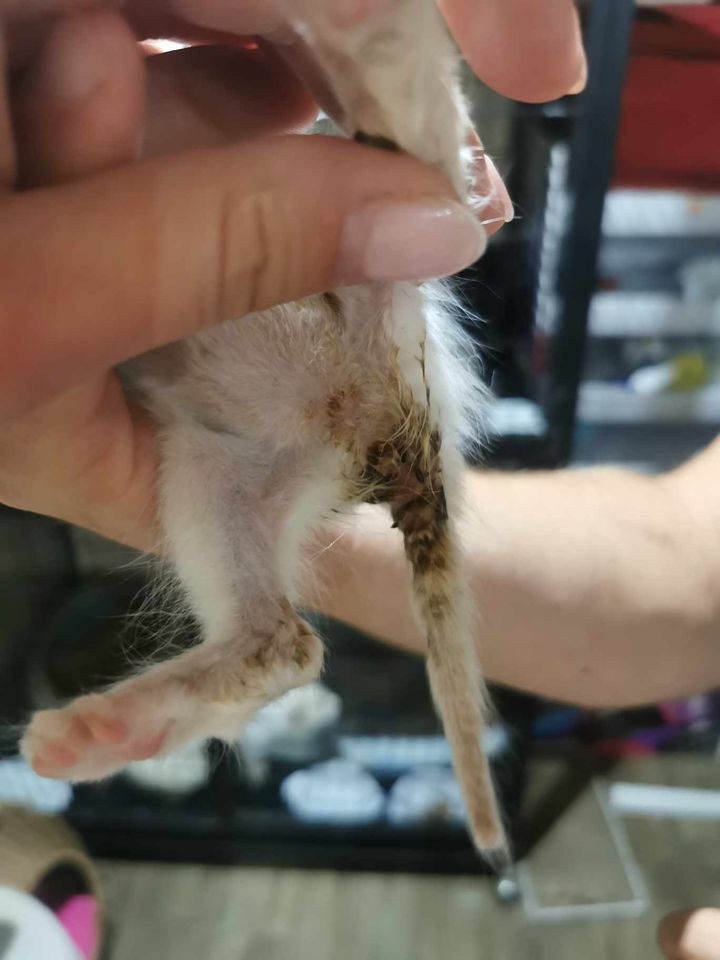 Maluszki były w swoich odchodach i krwi- krwawa biegunka. Mniejszy ma odparzone łapki i ogonek. Oczy zaropiałe, zaklejone malusie noski.